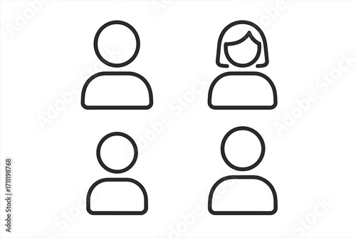 User avatar icon set. Profile pictogram collection. People, person, male, female head signs. Linear minimal symbols for web design, apps, UI, UX, and social networks.