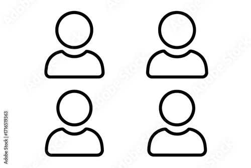 User avatar outline icon set for graphic design, web design, apps, adverts, various cards, minimalistic person symbol, vector cartoon illustration with transparent background