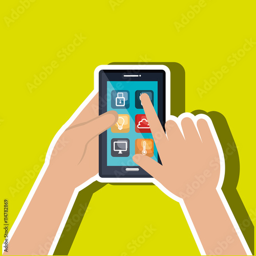 user hands with smartphone house isolated icon design, vector illustration graphic
