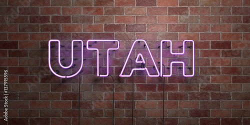 UTAH - fluorescent Neon tube Sign on brickwork - Front view - 3D rendered royalty free stock picture. Can be used for online banner ads and direct mailers..