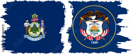 Utah and Maine states grunge brush flags connection, vector