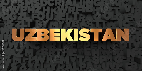 Uzbekistan - Gold text on black background - 3D rendered royalty free stock picture. This image can be used for an online website banner ad or a print postcard.