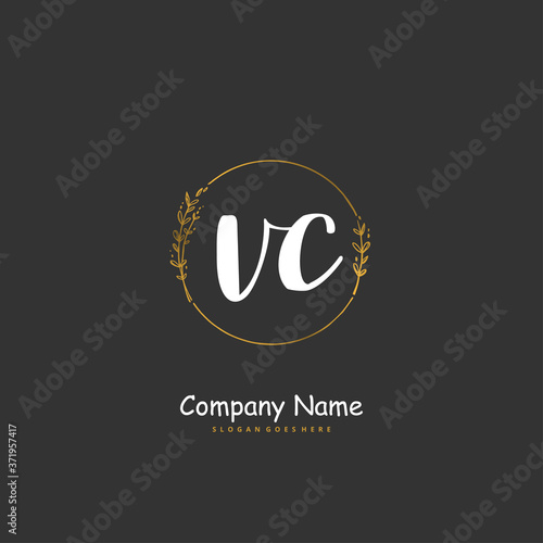 V C VC Initial handwriting and signature logo design with circle. Beautiful design handwritten logo for fashion, team, wedding, luxury logo.