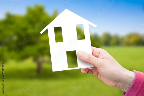 Vacant land for sale against a green meadow - new construction of residential building - opportunities for development and investment in the construction