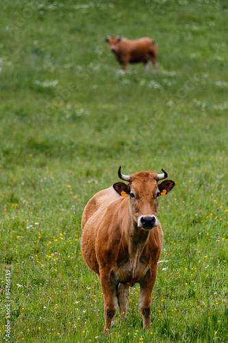 Vacas pastando en los prados del valle de Leitariegos, Asturias, Spain
