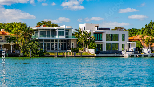 Vacation in summer. Luxury waterfront hotel building. Summer vacation. Landscape with luxury residential area. Residential waterfront apartment. Waterfront landscape with house. Luxury vacation