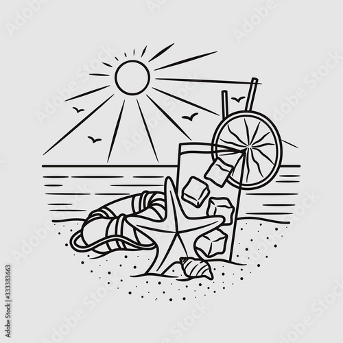 vacation summer beach vintage vector line art illustration. isolated vector.