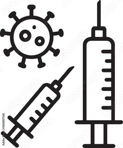 Vaccination Campaign Conceptual Illustration Featuring Syringes and Virus Symbolizing Immunization Efforts to Combat Viral Infections Globally