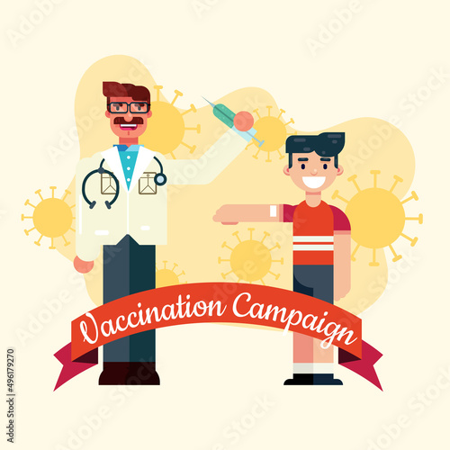 Vaccination Campaign healthcare awareness corona virus covid-19 pandemic doctor boy kid illustration vector