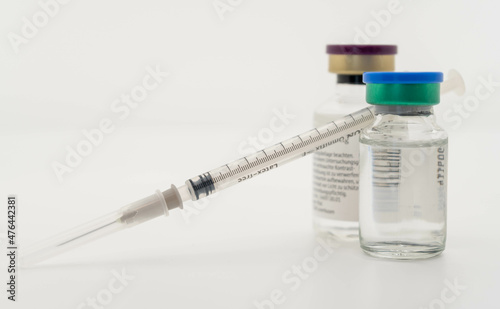 vaccination equipment, syringe and vail with corona vaccine