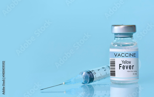 Vaccine in a bottle with a syringe on a blue background.The conc