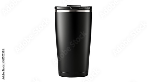 vacuum insulated travel coffee mug, studio view, isolated on transparent background.
