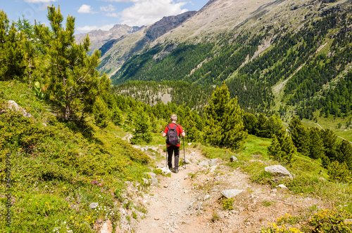 Val Roseg, Ova da Roseg, Rosegbach, Rosegtal, Hochtal, Wanderweg, Wanderer, Alpenrose, Berninagruppe, Sellagruppe, Oberengadin, Murtèl, Corvatsch, Fuorcla Surlej, Alpen, Sommer, Graubünden, Schweiz