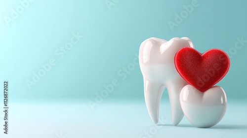 Valentine dental teeth heart. A tooth and a heart symbolize dental care and love for oral health on a soft blue background.