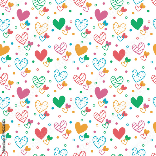 Valentine Seamless Pattern Wallpaper - Colorful multi hearts valentines day doodle vector illustration background - Love valentine's digital wrapping paper - wedding dating anniversary wallpaper