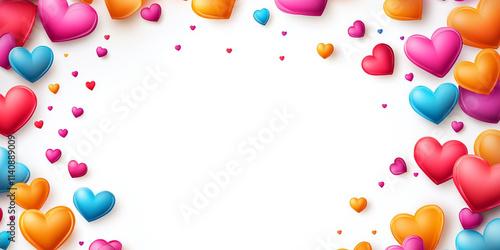 Valentine's Day Banner, White Banner with Space for Text, Banner with colorful Hearts Around