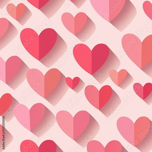 Valentine’s Day Flat Background with Heart Shapes in Pink Romantic Style