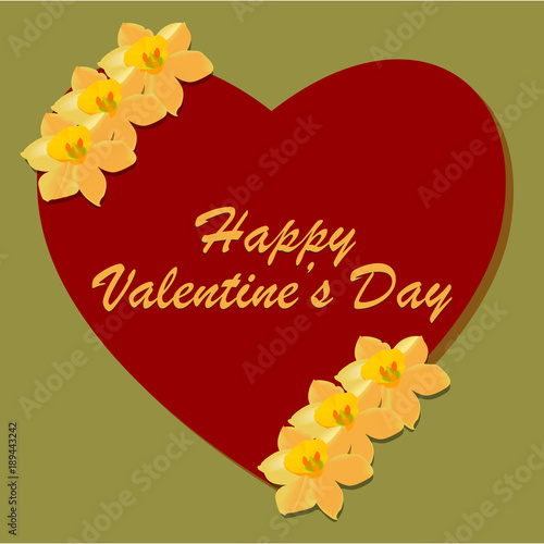 Valentines day heart with narcissus flower. Vector illustration.