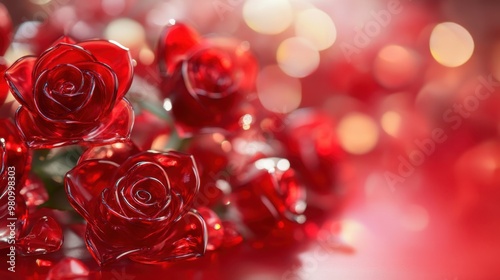 Valentine's Day Red Glass Roses on Romantic Bokeh Background