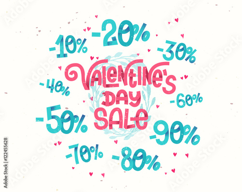 Valentine's day sale, discount percentages in cute girly cartoon style numbers for sales promotions and discounts
