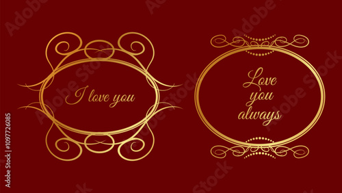 Valentines Day text in a vintage Golden Round frame. Design banner invitation card recognition web page. Vector illustration.