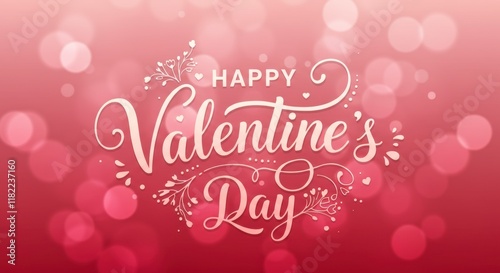 Valentine's Day Wishes: A romantic design for Valentine's Day with a gradient red background, adorned with stylized "Happy Valentine's Day" lettering and subtle bokeh lights.