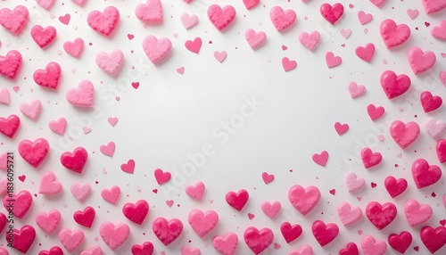 "Valentine’s Love Background with Falling Pink Hearts on White Surface"