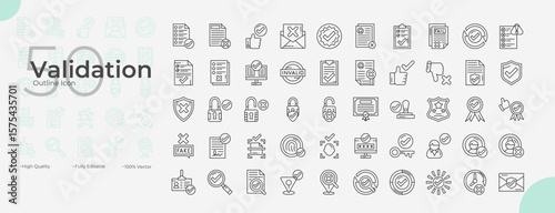 Validation Line Editable Icons set. Vector illustration in modern thin line style of Validation icons: validation, approval, check, etc