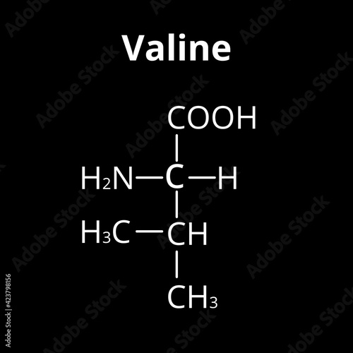 Valine amino acid. Chemical molecular formula of valine amino acid. Vector illustration on isolated background