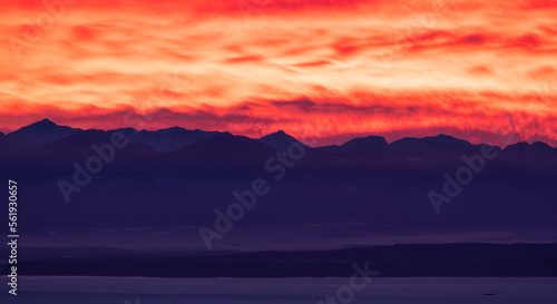 Vancouver Island Covered in Clouds during winter sunset. Viewed from Cypress Lookout, West Vancouver, British Columbia, Canada.