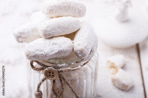 Vanilla cookies in powdered sugar.Christmas decoration