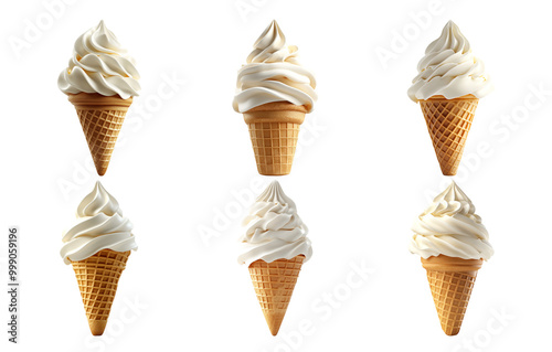Vanilla ice cream cones in classic waffle cones isolated on transparent background