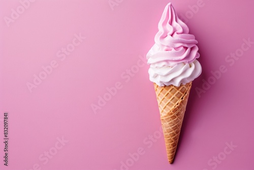 Vanilla ice cream in a waffle cone on a white background with space for text