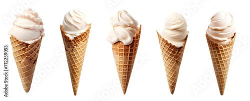 vanilla ice cream isolated on a transparent PNG background, white background, Generative Ai