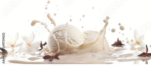 Vanilla Ice Cream Splash with Flowers and Star Anise