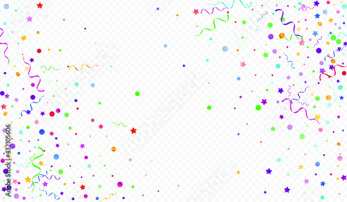 Variegated Circles Swirl Vector Panoramic Transparent Background. Isolated Star Branch. Serpentine Shiny Template. Colored Anniversary Invitation.