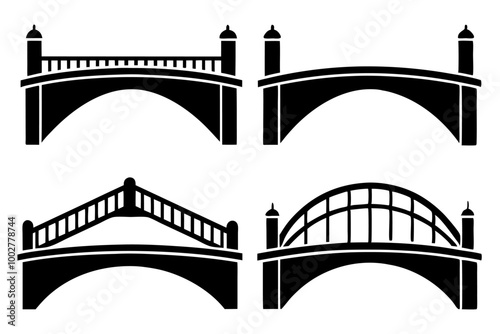 Variety of Bridges Black Silhouette Vector Art Design Set on White Background