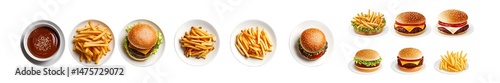 Variety of fast food options displayed on plates. isolated on transparent background