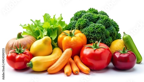 Variety of organic fruits and vegetables, isolated on white, agriculture, grocery, fresh