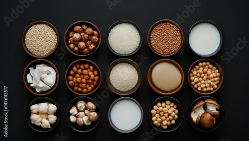 Variety of plant-based foods in small bowls