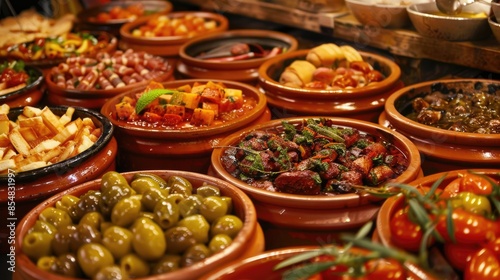 Variety of Popular Spanish Tapas A Mix of Mediterranean Flavors
