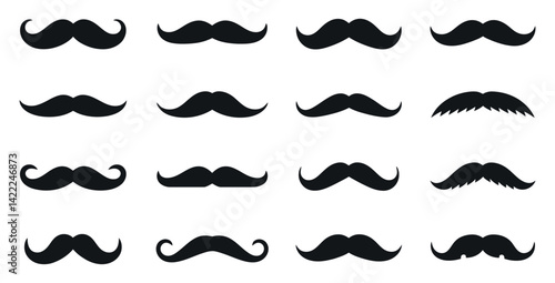 Variety Of Silhouette Mustache Styles In Vector Format On A Clean White Background Design Template