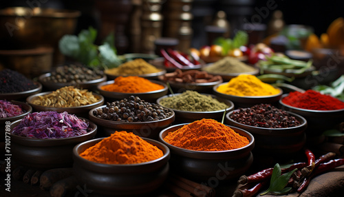 Variety of spices in a colorful bowl generated by AI