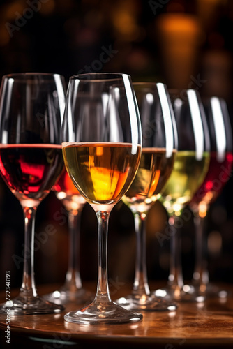 Variety of Wine Glasses in a Row.