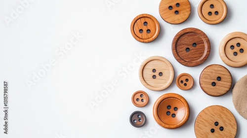 Variety Of Wooden Buttons In Different Shapes And Sizes Arranged Neatly On A Light Background For Sewing And Crafting Projects