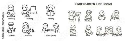 Various activities for kindergarten children including drawing, painting, reading, and cooking in a fun and educational environment