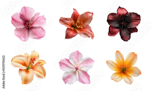 Various beautiful blooming flowers isolated on a transparent or white background, cut-out, PNG