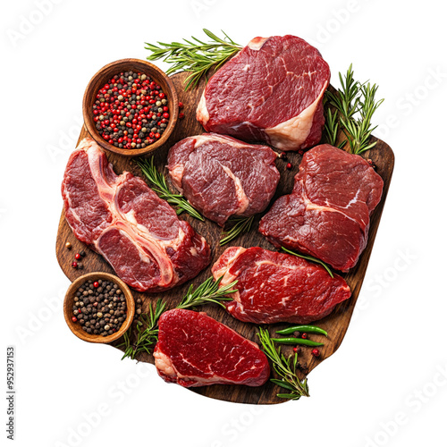 Various beef steak with spices isolated on a white background, png transparent