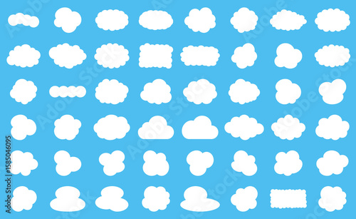 Various Clouds collection. Cloud Shape icons. Abstract white cloudy set isolated on blue background. Vector illustration