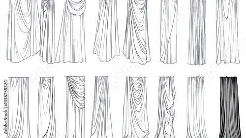 Various curtain styles, design guide, interior design, home decor, white background